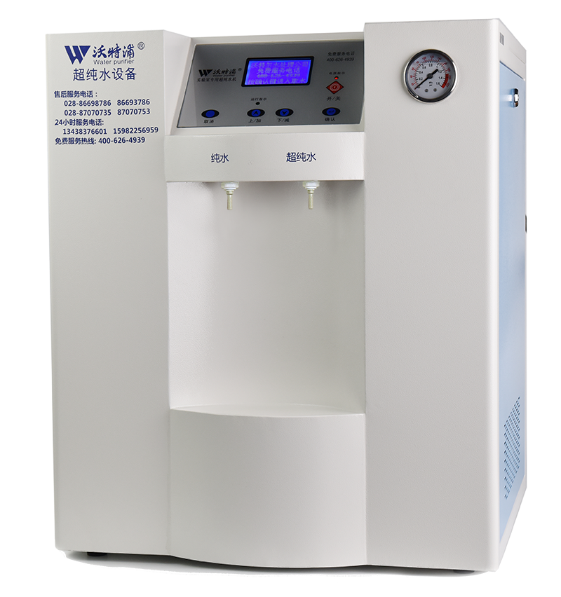 设备组件:系统配备3G真空压力储水桶;采用内置模块化一体式预处理、RO反渗透膜、纯化柱系统;