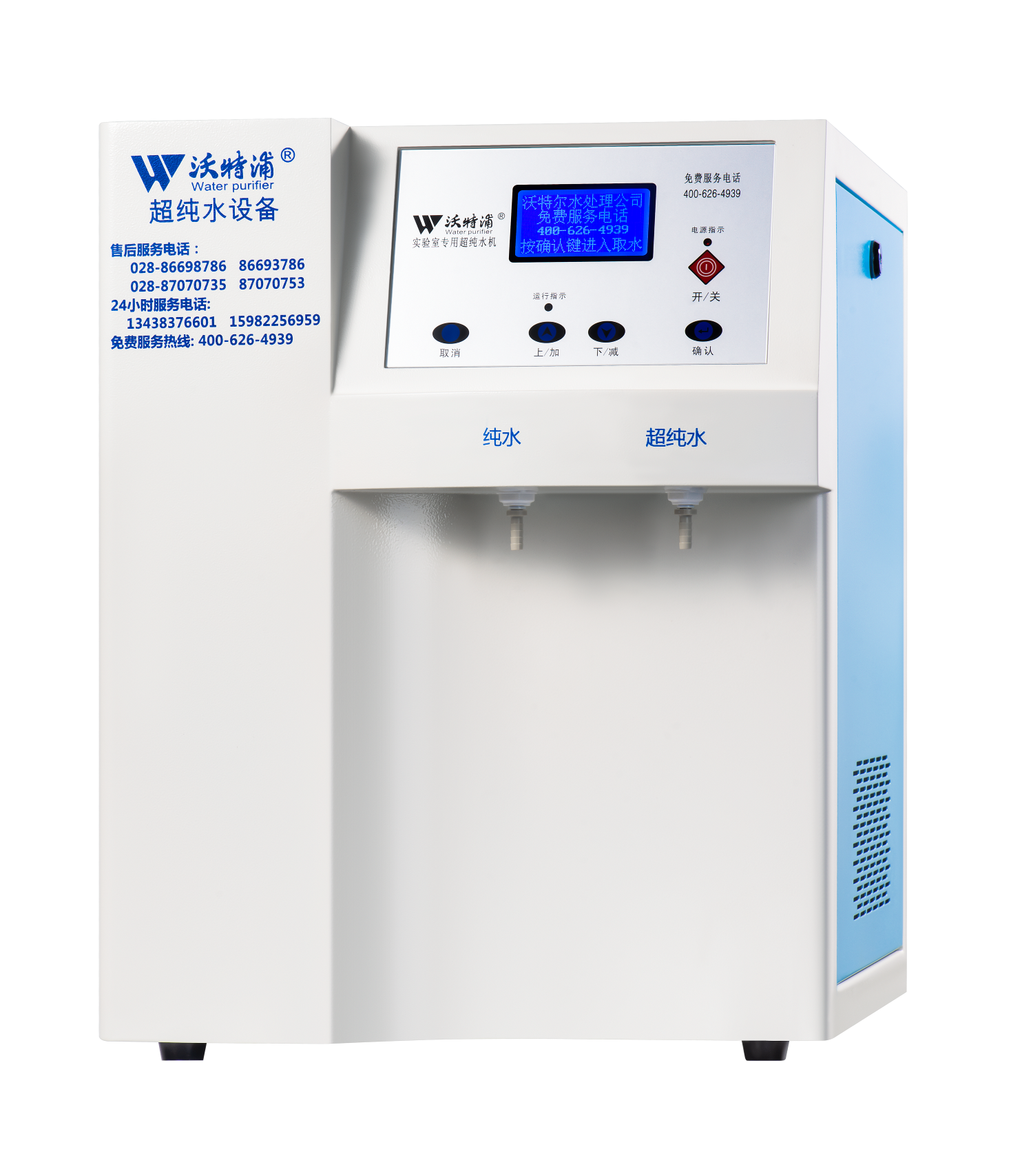 耗材管理:耗材失效真人语音报警及更换提示,耗材失值可据实际需要在1-18.25MΩ.cm间设;耗材更换自动识别,便于更好地管理设备。